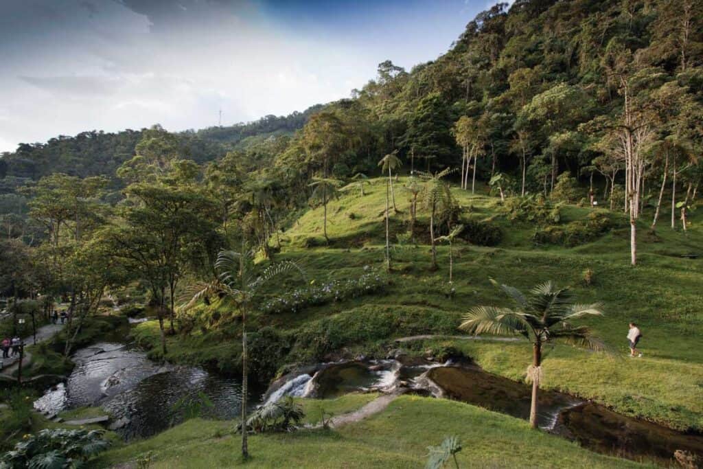 Santa Rosa ist eine Kleinstadt, welche bei Pereira gelgen ist. Eine Marktstadt, in der sich alles um Kaffee dreht. Kurz nach Santa Rosa stehen zwei herrliche Thermalbäder. Beide sind ideal in der einzigartigen Natur angelegt, Sie liegen direkt unter einem Wasserfall, welcher Wasser aus dem Parque de los Nevados nach unten in die Kaffeezone trägt. Man findet verschiedene Schwimmbäder, diese sind teilweise unterschiedlich warm temperiert. Ideal um zu entspannen im warmem Wasser, umgeben von mildem Klima in dieser traumhaft schönen Region.